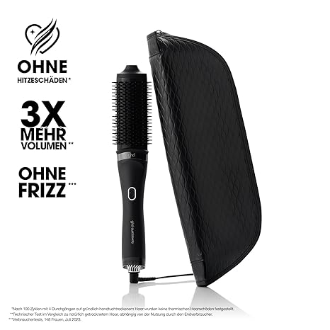 Der ghd duet blowdry™ ist speziell für nasses Haar konzipiert und nutzt die Kraft des Luftstroms, um sowohl das Heizzylinder als auch die Borsten zu erwärmen. Dies ermöglicht es Ihnen, Volumen und Glanz zu schaffen, während frizzfreie Ergebnisse garantiert sind. Mit seinen fortschrittlichen Sensoren überwacht das Gerät die Temperatur 400 Mal pro Sekunde, um sicherzustellen, dass Ihr Haar optimal geschützt wird und keine Hitzeschäden erleidet.