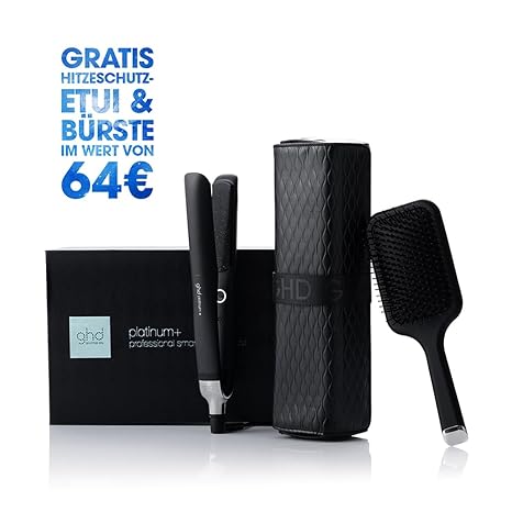 GHD PLATINUM+ GESCHENKSET: Beinhaltet den ghd platinum+ professionellen Smart Styler, die ghd „The All-Rounder“ Paddle Brush und ein hitzebeständiges Etui.