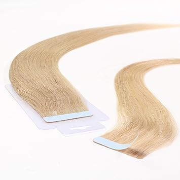 hair2heart 30 x Tape In Extensions aus Echthaar, 50cm, 2,5g Strähnen, glatt - Farbe 18 haselnussblond