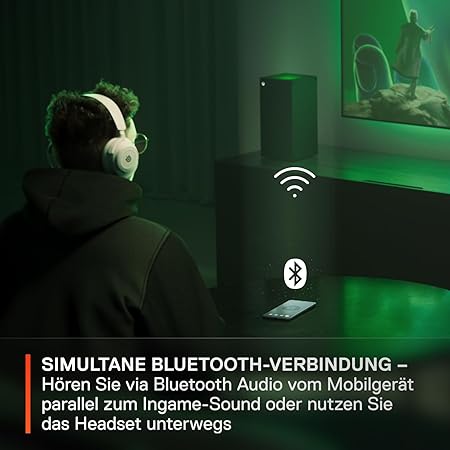 Das Arctis Nova 7X unterstützt duale Audiostreams, was bedeutet, dass du während des Spielens gleichzeitig über Bluetooth mit deinem Smartphone kommunizieren oder Musik genießen kannst. Die 2,4 GHz-Übertragungs-Technologie gewährleistet eine verzögerungsfreie Verbindung mit verschiedenen Plattformen wie Xbox, PC, Mac, PlayStation und Nintendo Switch. Der mitgelieferte USB-C-Dongle vereinfacht den Wechsel zwischen den Geräten.
