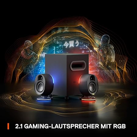 - Modelltyp: 2.1-Gaming-Lautsprecher mit RGB-Beleuchtung